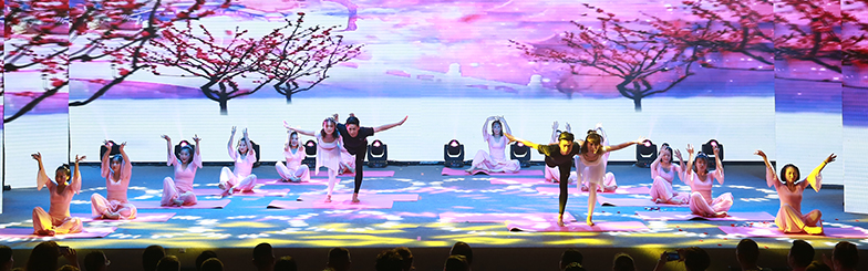 伴隨著滌蕩心靈的唯美音樂,“武水麗人”向現(xiàn)場觀眾展示著最美好的自己。一呼一吸,寧靜優(yōu)雅,端莊細(xì)膩;舉手投足,行云流水,柔軟曼妙,將女性之美發(fā)揮到了極致。精彩的表演將現(xiàn)場觀眾帶入到一種妙不可言的秘境之中……不同風(fēng)格的瑜伽體式展示,與美輪美奐的舞臺(tái)背景完美融合,給現(xiàn)場的眾多瑜伽愛好者帶來了一種全新的感官體驗(yàn),共同經(jīng)歷了一場心靈的洗禮。