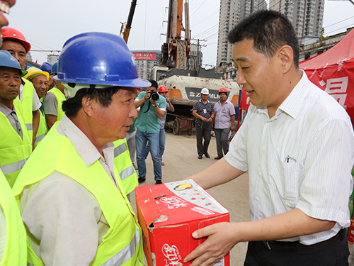 彭浩表示,今天受萬(wàn)勇市長(zhǎng)委托,看望城投公司生產(chǎn)建設(shè)一線的同志們,感謝你們?cè)诟邷乜崾罾飯?jiān)守在生產(chǎn)建設(shè)一線,為了市民安全用水用氣、為了城市建設(shè)所作的積極奉獻(xiàn)!他勉勵(lì)大家繼續(xù)發(fā)揚(yáng)這種不怕高溫酷暑、克難奮戰(zhàn)的精神,再接再厲,為城市的發(fā)展再作貢獻(xiàn)。