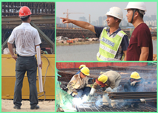 烈日炎炎下的三環(huán)線南改造項(xiàng)目野芷湖立交工程和李紙路立交工程工地上......