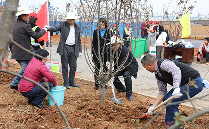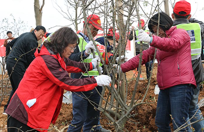 在植樹現(xiàn)場,公司領導吳文、江強生、余靖玲、朱斌、盛華、陳春保、王賢兵與大家一起揮鍬鏟土,提水澆灌。全體同志興致勃勃,干勁十足......