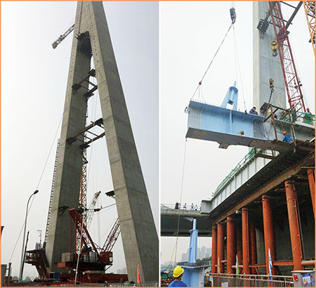 日前,由市城投公司負(fù)責(zé)建設(shè),道橋公司代建、湖北路橋公司施工的江漢四橋拓寬改造工程完成首節(jié)正橋鋼箱梁拼裝和首對(duì)4根斜拉索掛設(shè)。