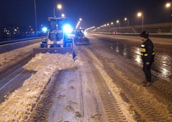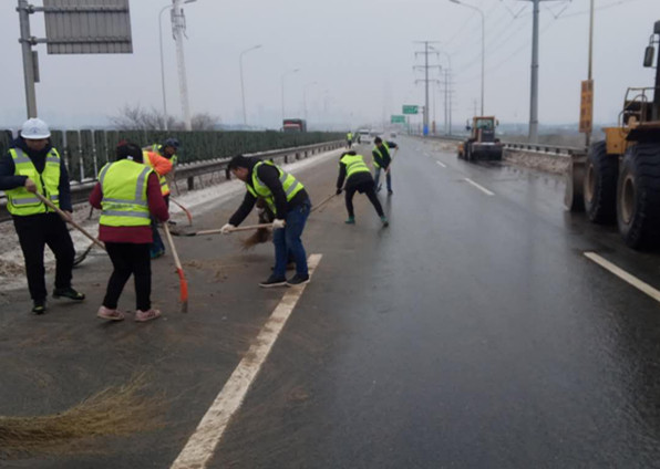 截止28日下午18時,三環(huán)線全線基本保持雙向6車道安全暢通,白沙洲長江大橋、長豐橋、天興洲長江大橋橋面道路已完成積雪清理,其他橋梁未發(fā)現(xiàn)明顯結冰情況,所屬橋梁通行狀況正常。此次鏟雪除冰“大會戰(zhàn)”,公司共組織人員2300余人,投入鏟車、平地車、裝載車等應急車輛150余臺,累計完成融雪除冰約61萬平方米。