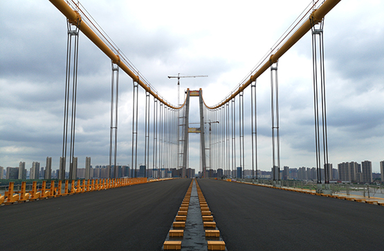 澆筑式瀝青混凝土攤鋪前的準備工作于2019年4月5日啟動,5月24日完成了澆筑式瀝青混凝土的施工,5月28日完成了行車道鋼橋面的SMA面層攤鋪施工,6月23日完成了漢陽接線引橋的瀝青攤鋪工作。預計7月底完成武昌接線引橋瀝青攤鋪,8月底完成正橋防撞護欄施工,并同步開展交通工程、路燈、亮化、橋梁健康監(jiān)測、地面輔道、綠化等施工。