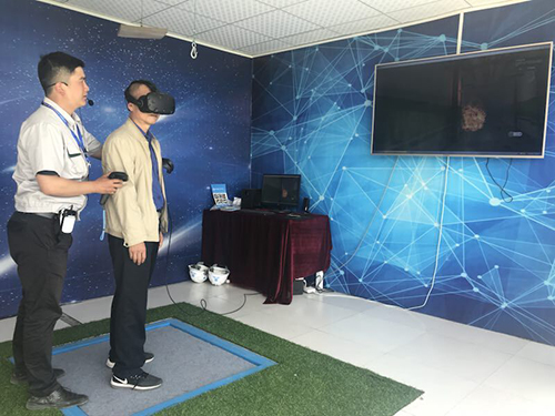 在他們的“新法寶”中,體驗(yàn)以建筑施工場景為背景,采用全沉浸、人機(jī)交互的方式高度還原現(xiàn)場,體驗(yàn)者佩戴VR眼鏡和外部環(huán)境完全隔絕,進(jìn)入到虛擬環(huán)境中,通過操作手柄控制。同樣是安全體驗(yàn),3D漫游的效果比普通的VR體驗(yàn)更為顯著。新的體驗(yàn)通過視覺、聽覺、觸覺等多種感官系統(tǒng),能完成在最貼近工程建設(shè)環(huán)境中的傷害體驗(yàn),使體驗(yàn)者對事故后果產(chǎn)生“敬畏之心”,深切認(rèn)識到各類傷害,起到警示、震撼教育的目的,從而提高體驗(yàn)者的安全意識。