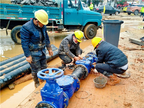 為救治新型肺炎患者,解決現(xiàn)有醫(yī)療資源不足,武漢市決定參照北京小湯山醫(yī)院模式建設(shè)火神山醫(yī)院。集團(tuán)公司副總經(jīng)理盛華同志被抽調(diào)參與醫(yī)院建設(shè)指揮,所屬水務(wù)集團(tuán)臨危受命負(fù)責(zé)落實(shí)火神山醫(yī)院供水保障建設(shè)。 沒(méi)有任何戰(zhàn)前動(dòng)員,大年三十下午,水務(wù)集團(tuán)蔡甸自來(lái)水公司、武漢水務(wù)工程公司50多名職工在兩小時(shí)內(nèi)集結(jié)完畢,趕赴現(xiàn)場(chǎng)投入工作。在位于蔡甸知音湖大道的火神山醫(yī)院建設(shè)現(xiàn)場(chǎng),施工人員徹夜奮戰(zhàn)、輪番上陣,從1月24日(大年三十)19點(diǎn)到1月25日(大年初一)下午17點(diǎn),歷時(shí)22小時(shí),比原計(jì)劃提前2小時(shí)完成了火神山醫(yī)院供水管道施工任務(wù)!