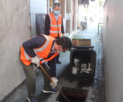 10月1日上午,房產(chǎn)集團工作人員在管轄的房屋區(qū)域疏通窨井