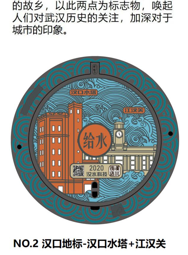 除了外形新穎,“漢水”系列文化井蓋還非常智能,每個(gè)文化井蓋都設(shè)計(jì)了獨(dú)立二維碼,通過(guò)手機(jī)掃描,可看到圖案中對(duì)應(yīng)地標(biāo)建筑的人文故事、地下供水設(shè)施情況及供水服務(wù)信息等。同時(shí),如后期通過(guò)專(zhuān)業(yè)軟件掃描二維碼,還可以查詢到供排水企業(yè)使用的地理信息編碼,了解該井蓋的建設(shè)時(shí)間、井下設(shè)備狀況、管道設(shè)施情況、相關(guān)維護(hù)信息等一系列資料,方便產(chǎn)權(quán)單位管理及維護(hù)。